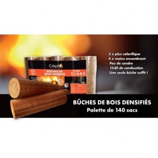 Les bûches densifiées sont disponibles en palette de 140 sacs - équivalent à 2,3 stères NF - avec la livraison à votre domicile et son installation à l’endroit de votre choix (sous réserve d’accessibilité).